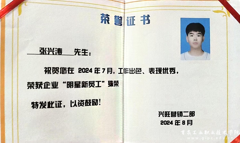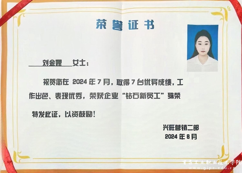 近日,经管学院2022级实习生数会2232班刘金禅、营销2231班张兴涛在北京万汇浩然电子有限公司实习期间,以其出色的工作能力和积极向上的态度,赢得了企业上下的一致好评,被评选为“钻石新员工”和“明星新员工”。