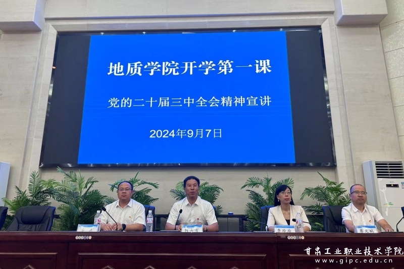为深入学习贯彻党的二十届三中全会精神、落实立德树人根本任务,引导广大学子将理想抱负与国家命运、学校使命联系起来,9月7日,地质学院党总支书记何吉有在图书馆五楼智敏报告厅,为学院全体2024级新生讲授“开学第一课”。