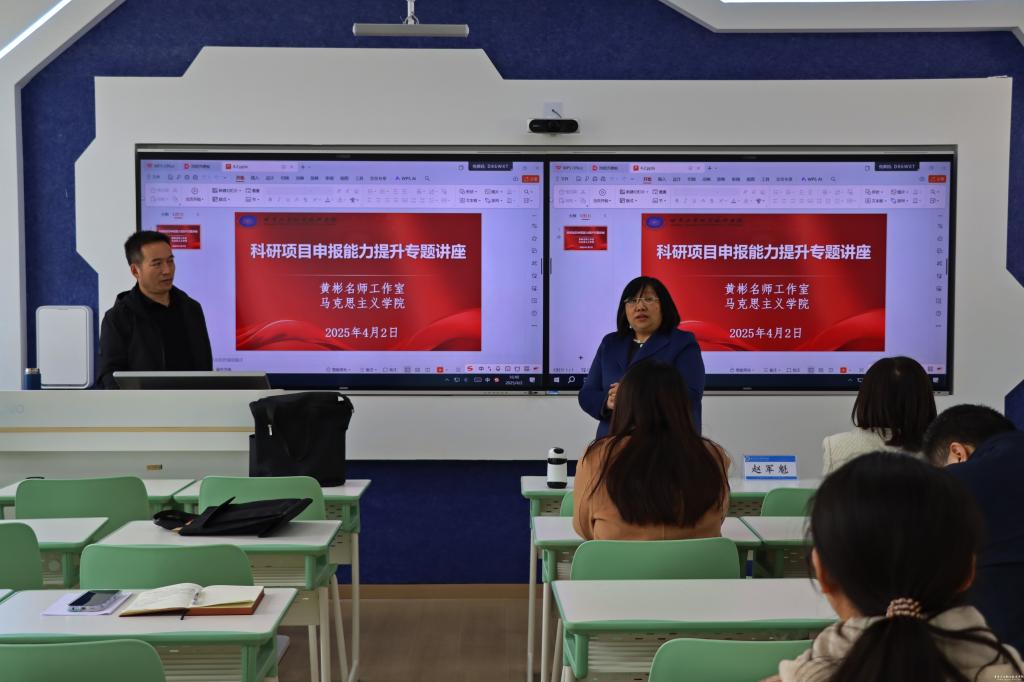 为进一步提升全体教师的科研素养与创新能力,切实增强教师开展科学研究的内生动力,4月2日下午,我校黄彬名师工作室联合马克思主义学院在2号教学楼601教室成功举办本学期思政大讲堂第三讲,甘肃政法大学赵军魁教授受邀作专题报告,以“积极申报科研项目 让你飞得更高”为主题。马克思主义学院副院长王军主持报告会,马克思主义学院全体思政课教师、相关职能部门和二级学院的科研骨干、天水市实验小学部分思政课教师等人员参加。