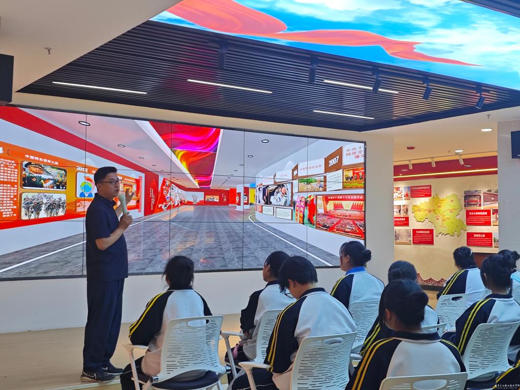 导游专业AI虚拟仿真实训基地内,师生通过数字孪生技术动态模拟了敦煌莫高窟智能导览等场景。红色旅游实训中心以“数字活化革命记忆”为主题,运用VR技术还原长征历史场景,展示了我校在红色文旅IP数字化实践中的成果。