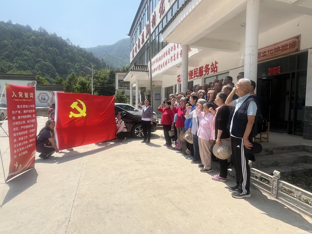 随后,在地质文化体验馆前,全体老党员重温入党誓词。面对鲜红的党旗,老同志们庄严地举起右拳,铿锵有力的誓言在空中回荡,彰显着他们对党的忠诚和为党的事业奋斗终身的决心。