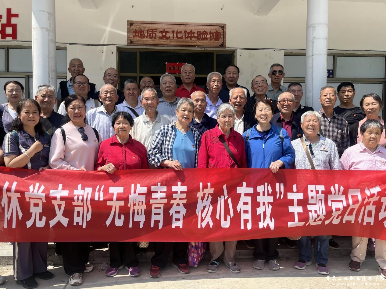 5月20日,学校离退办党总支组织40名离退休党员走进花庙村地质文化村,开展“无悔青春 核心有我”主题党日活动。活动将地质文化学习与主题党日相结合,让老同志们在感受自然地质魅力的同时,深化党性教育,传承地质精神。