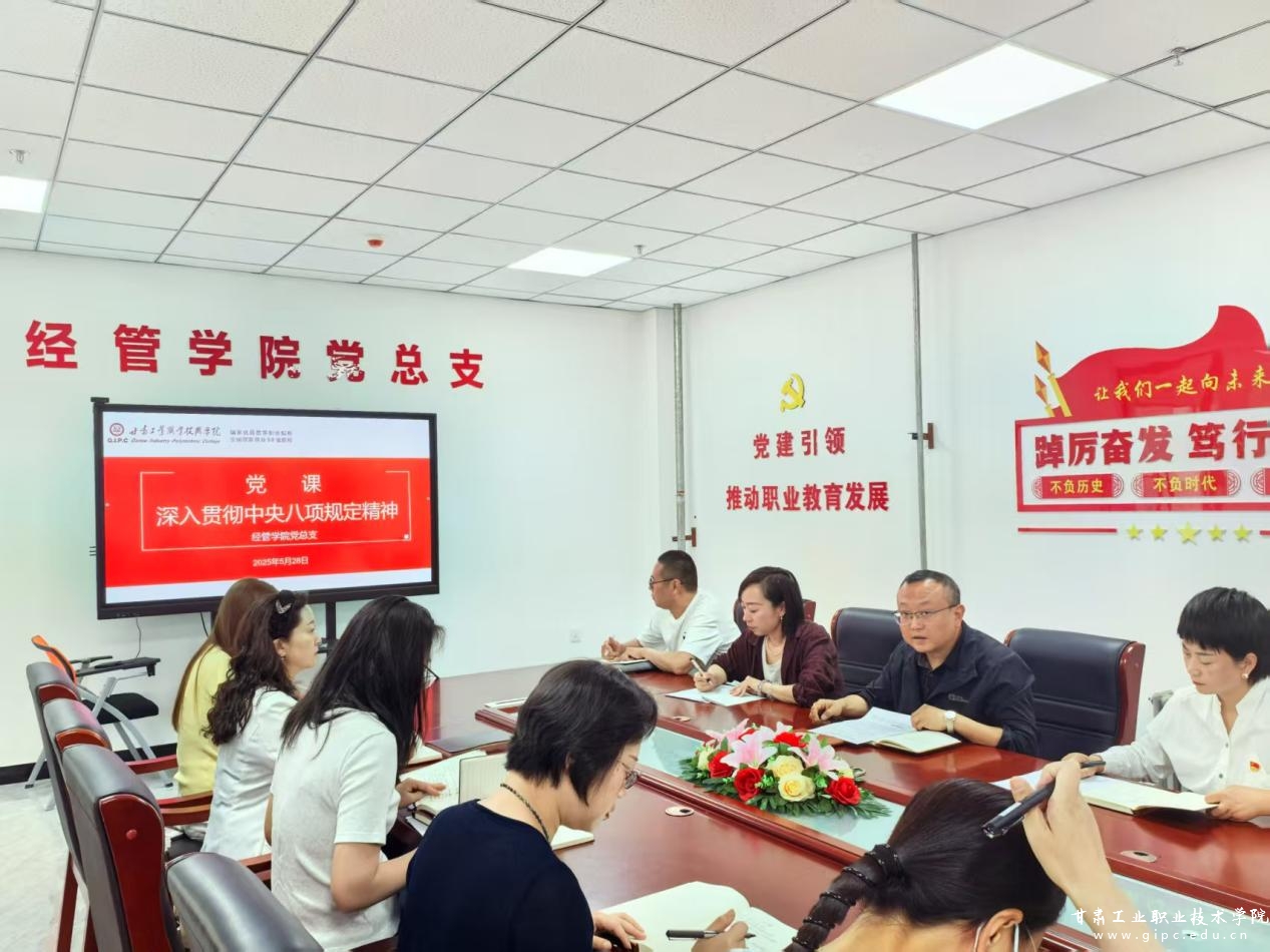 经管学院党总支书记李志杰以 “用廉洁文化固本培元,滋养不想腐的自觉” 为题讲授党课,带领集中学习《违反中央八项规定及其实施细则精神典型案例》,并组织观看警示教育片。
