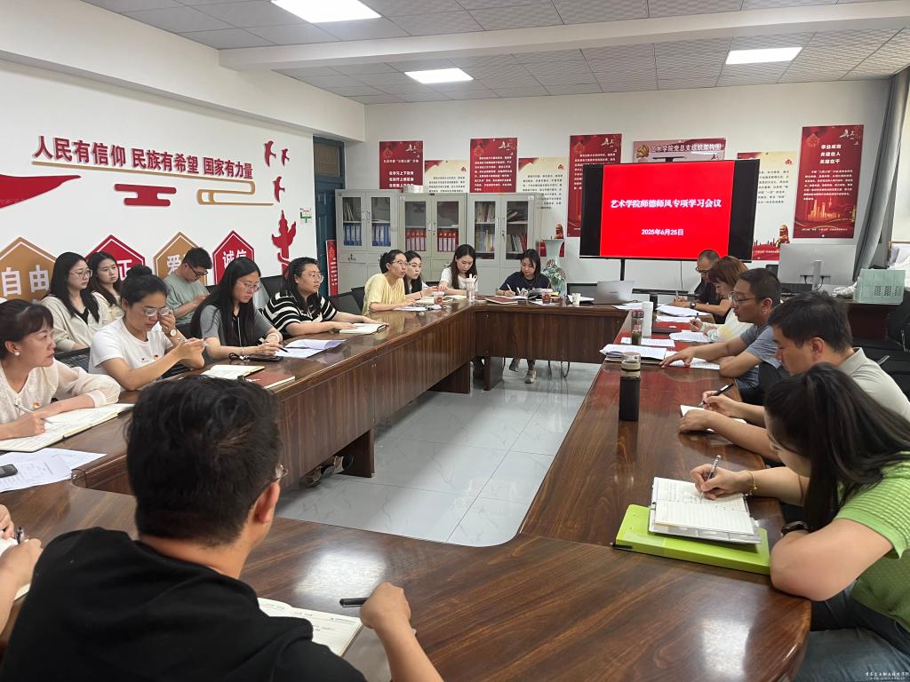 为进一步加强师德师风建设,提升教师思想政治素质和职业道德水平,6月25日,艺术学院组织召开师德师风专题学习会议,学院领导班子及全体教师参加。