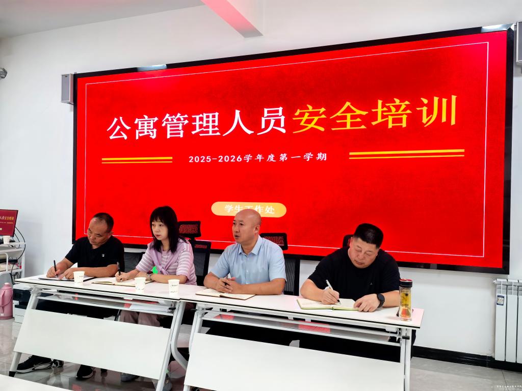 为扎实做好新学期学生公寓的安全管理与服务保障工作,确保新学期开学各项工作有序开展。8月22日下午,学工处在“一站式”学生社区召开公寓管理人员安全培训会议,会议由学工处处长马学成主持,学工处、公寓科相关人员及全体公寓管理人员参加会议。