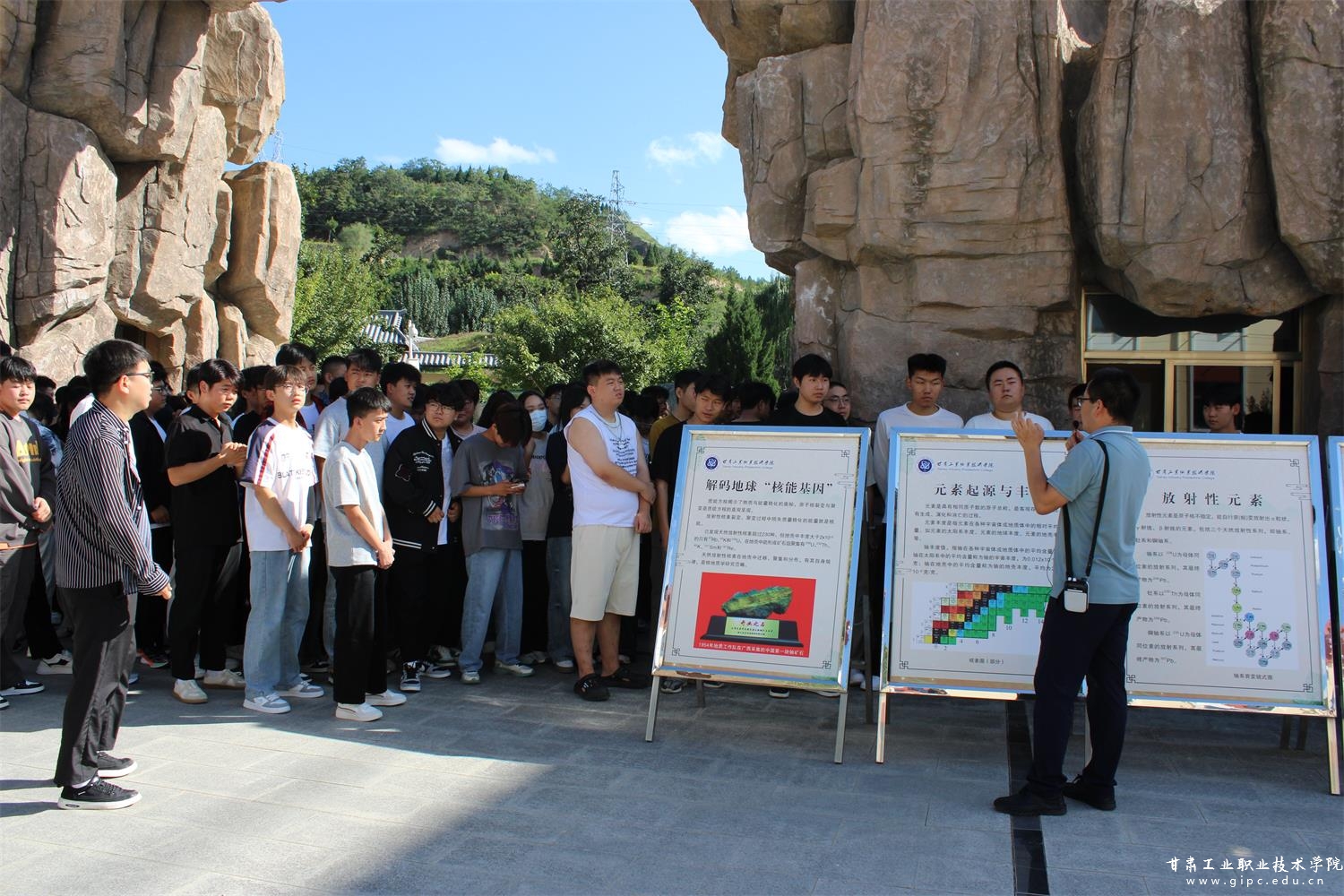本次活动充分依托学校地质园与地质博物馆的资源优势,共制作专题科普展板15块,分批次为智能制造学院、核工程与技术学院、艺术学院2025级全体新生,以及部分电子信息学院、地质学院新生,共计1200余人进行了系统、生动的科普讲解。