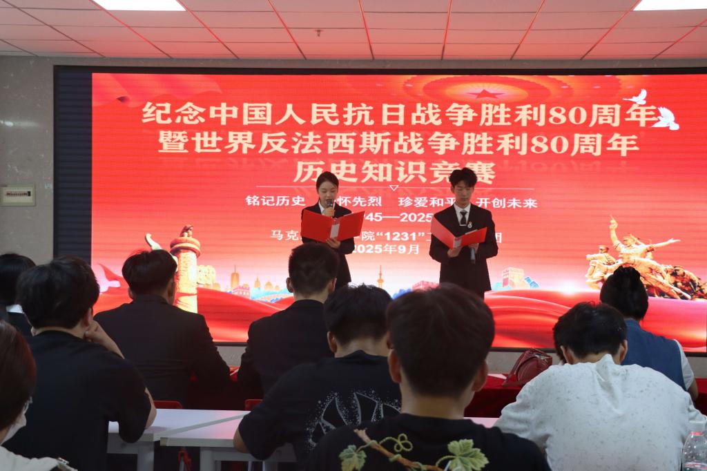 为深切缅怀革命先烈,弘扬伟大抗战精神,激发青年学生的爱国热情与历史责任感,9月12日下午,“1231”工程学生团成功举办了“纪念中国人民抗日战争胜利80周年暨世界反法西斯战争胜利80周年”历史知识竞赛活动。