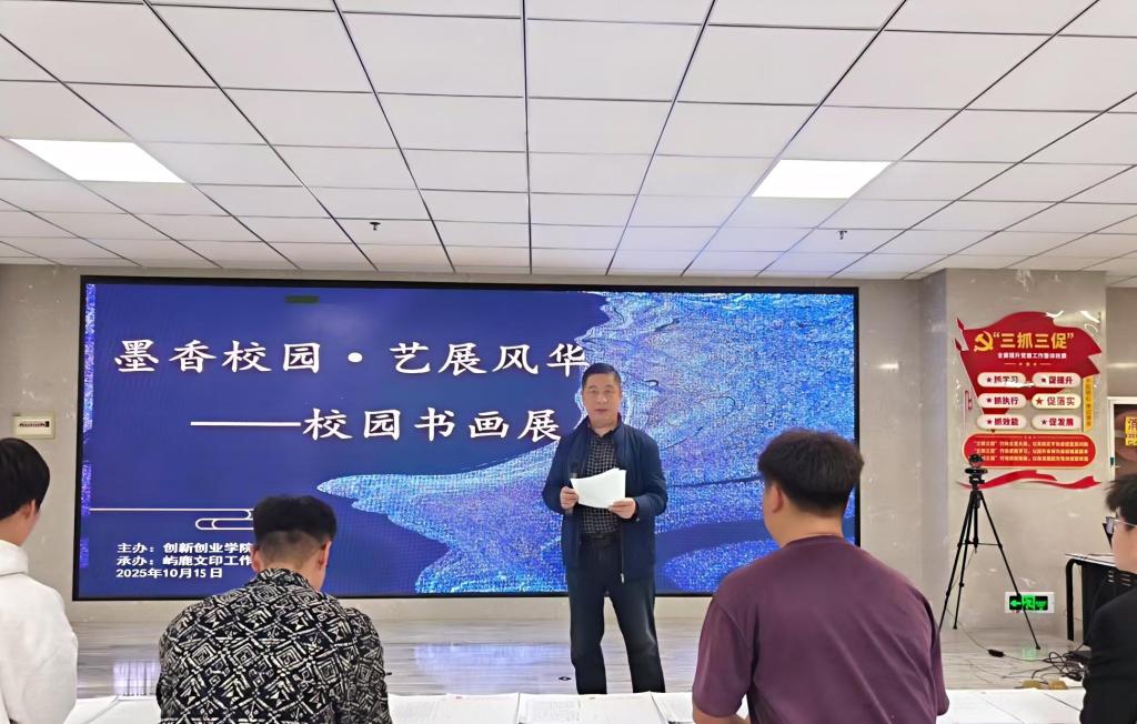 活动开幕式由创新创业学院张学文院长致辞,他在讲话中强调,书画展为学生搭建了专业的艺术展示平台,是学校落实美育教育的重要实践,对提升学生艺术修养、丰富校园文化生活具有实际意义。