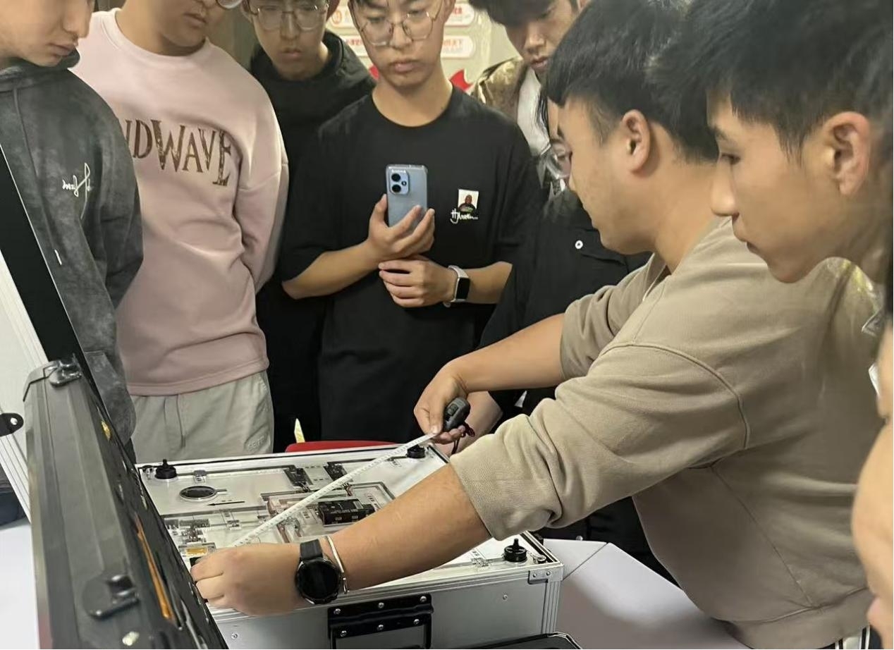 10月16日,创新创业学院无人机工作室实训室内马达轻鸣,50 余名学生分组围站操作台,在专业教师指导下完成无人机的机架拼接、飞控接线与转向调试。这场沉浸式教学活动通过“理论拆解 + 实操攻坚”模式,让学生亲手将零散组件转化为可运行的无人机设备。