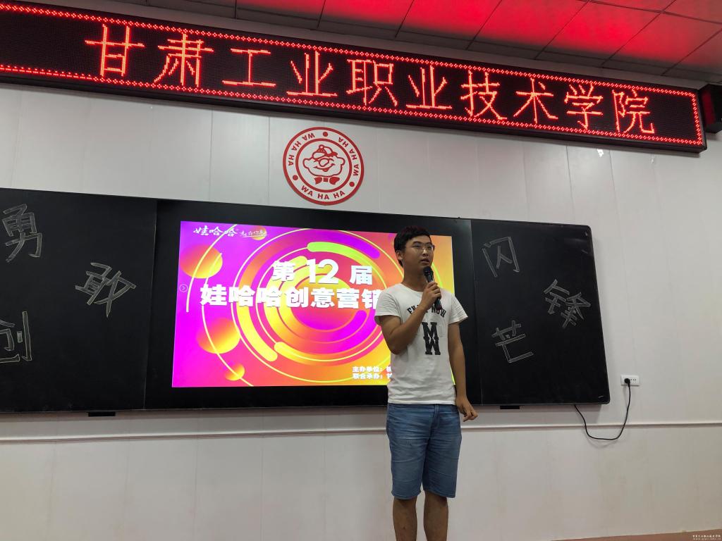 6月26日,由经管学院市场营销专业承办的第七届娃哈哈创意营销大赛pg娱乐电子游戏赛区颁奖典礼在西阶梯教室举行。出席本次颁奖典礼的有市场营销专业主任翟伟彤老师、娃哈哈天水区域拓展经理马露女士以及10支参赛队伍共65名学生。