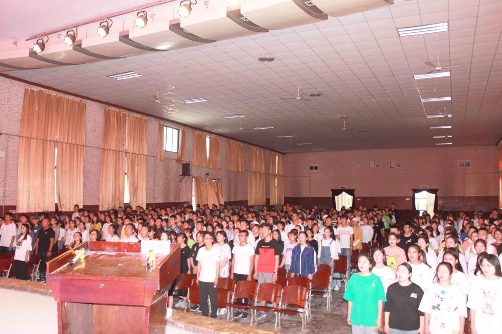 大会在雄壮的国歌声中拉开帷幕。会上,李玉林对本学期的期末考试、补考工作、评卷工作、成绩管理和试卷分析工作进行了署安排,强调了考场纪律、考场规则和监考规则。学生代表宣读了诚信考试倡议,教师代表带领全体学生进行了诚信考试宣誓。