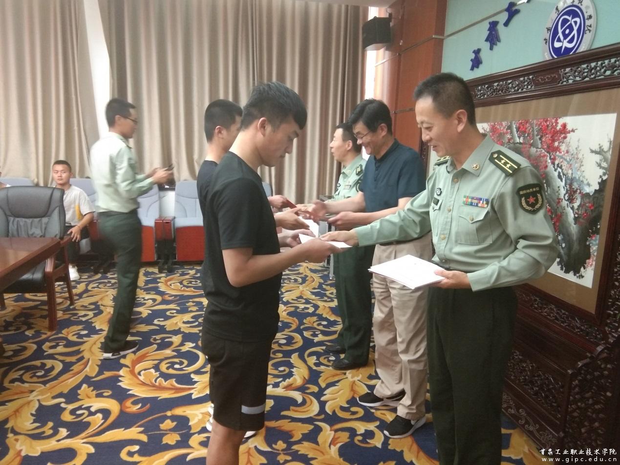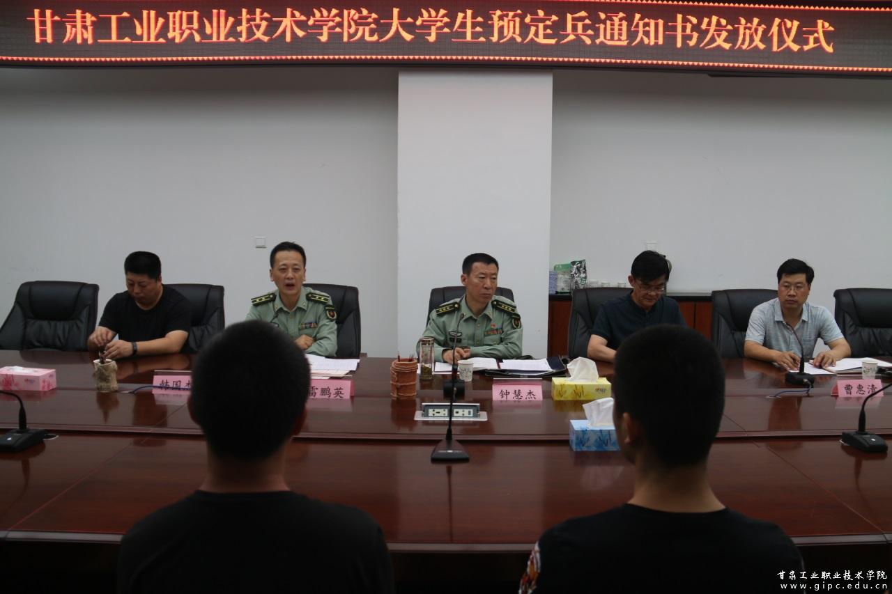 7月2日下午,校举行2019年大学生预定兵通知书发放仪式麦积区武装部政委钟慧杰、副部长雷鹏英,我校党委副书记郭建忠参加,仪式由校武装部部长曹惠清主持。