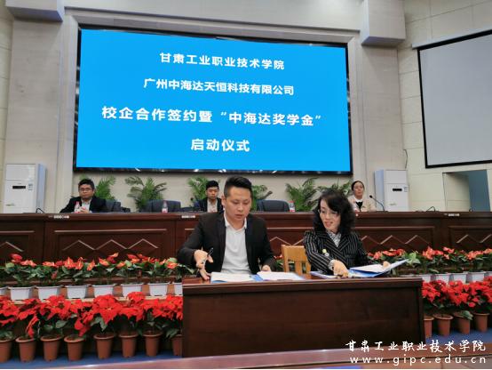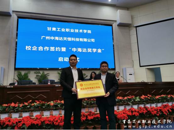 田春龙总监简要介绍了广州中海达天恒科技有限公司的基本情况,希望以此次校企合作签约为契机,拉近与学校之间的距离,在专业技能人才培养机制、毕业生就业渠道拓宽等方面加强合作与交流,实现优势互补。田春龙宣布甘肃工业职业技术学院“中海达”奖学金正式成立。