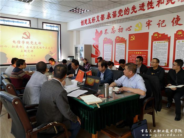 9月25日,电信学院党支部在2教3楼党员活动室开展支部书记讲党课暨主题党日活动,支部全体党员参加,支部书记张燎同志主持会议。