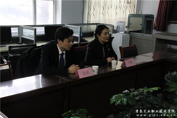 天水宾馆副总经理宋勤、天水宾馆行政办公室主任彭勃,山东蓝海集团人力资源经理杨兆永、山东蓝海集团人力资源部招聘经理李淼分别针对项目企业资质、项目协议内容、项目实施情况和项目监管情况与我院深入交换了意见。最终,与天水宾馆就学生实习实训、宾馆员工服务管理能力提升达成了初步意见,与山东蓝海集团深度合作及教育扶贫达成了一致意见。旅游学院党支部书记、院长曹瑞琴,旅游学院纪律检查委员、副院长李玉林,办公室主任刘晓丽、酒店管理专业主任王作娟参加洽谈。