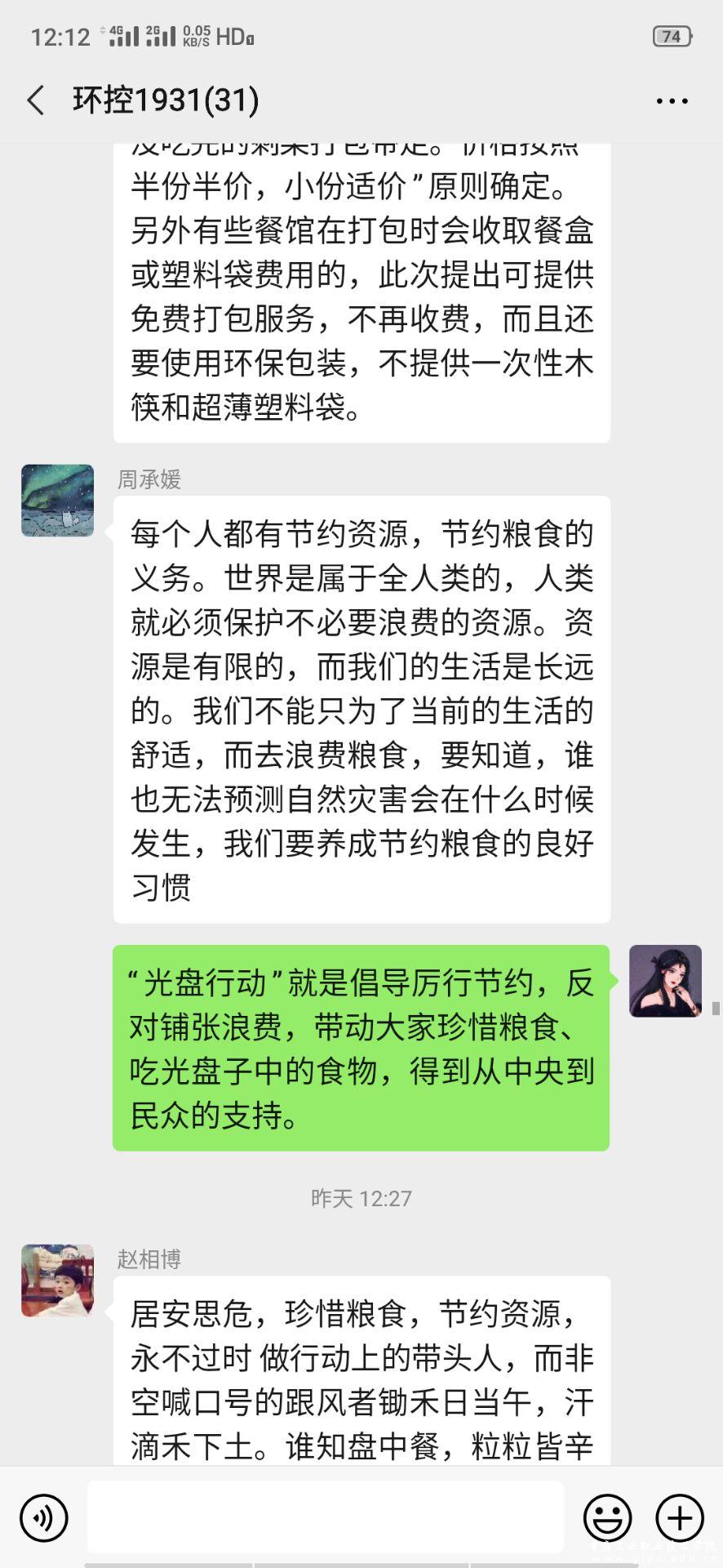 此次活动主要采用线上宣传的方式开展,依托QQ、微信等线上平台进行。邀请了同学们在“光盘打卡”微信小程序参与“光盘行动”互动。班级群里热烈开展了如何进行“光盘行动”的讨论、完成了光盘打卡任务、将认证证书以及光盘照片在朋友圈、QQ空间,微博等平台上传,邀请好友进行活动接力和宣传。