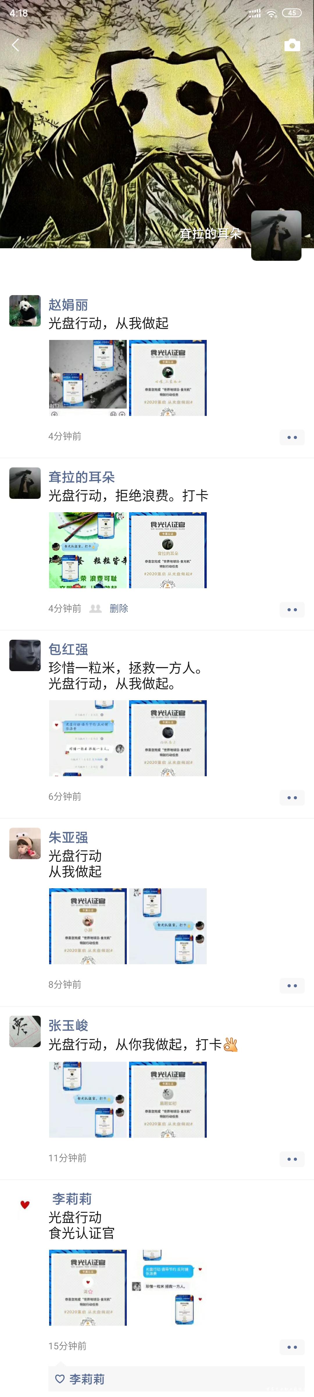 为深化落实“美丽中国·青春行动”实施方案,团中央统战部、联合中华环境保护基金会、光盘打卡,以世界地球日为契机,开展光盘行动,进一步倡导青少年节约粮食、践行绿色生活,4月22日起,在校团委指导下,校学生会组织各学生分会、各班级开展线上宣传倡导活动。
