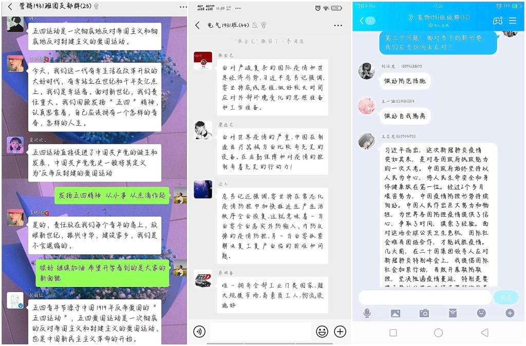 五四青年节来临之际,我校各团支部开展了新一期线上主题团课,深入学习习近平总书记关于疫情防控工作的系列重要讲话精神和指示批示精神,以“绽放战役青春·坚定制度自信”为主题,深入有效的宣传教育活动。