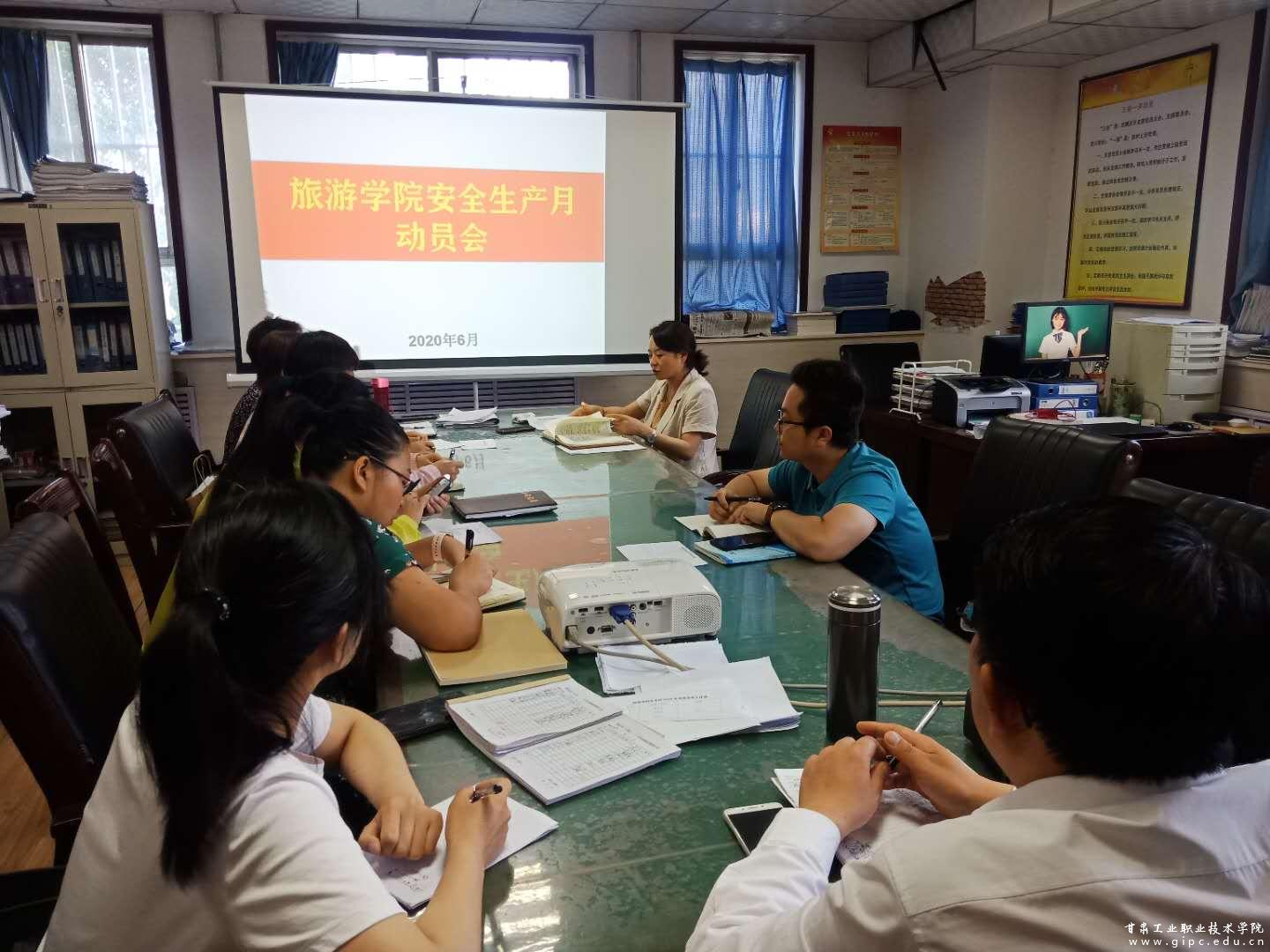 根据学校关于开展《2020年“安全生产月”和“安全生产陇原行”活动实施方案》(甘工院校函〔2020〕20号)精神和《旅游学院关于开展2020年“安全生产”系列活动的通知》(甘工院旅院发〔2020〕7号)要求,6月15日,旅游学院召开了2020年“安全生产月”工作会议,学院班子成员、全院教职工参加会议。
