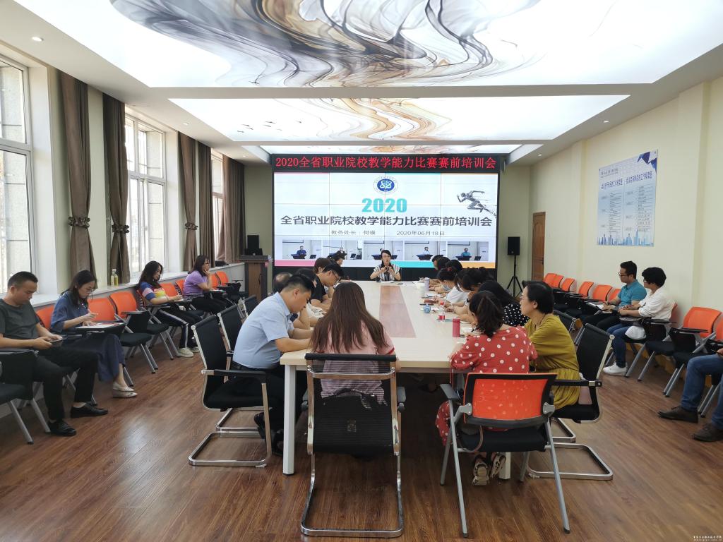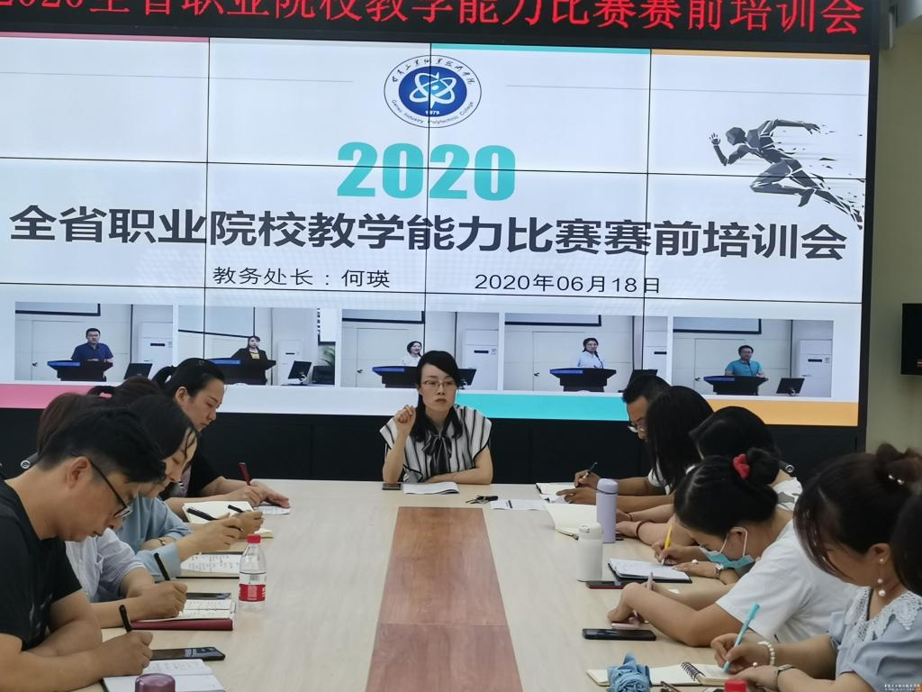 6月19月下午,教务处组织召开2020年全省职业院校教学能力比赛赛前培训会,教务处处长何瑛作赛前培训。