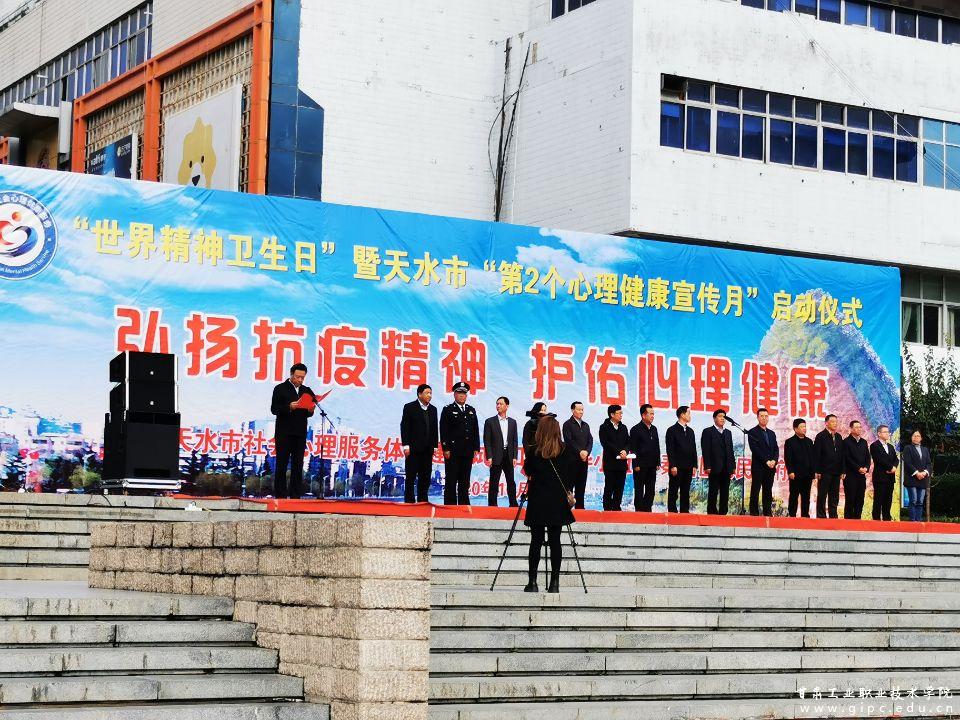 10月10日上午,第29个“世界精神卫生日”暨天水市第2个心理健康宣传月活动在龙城广场启动,我校组织心灵护卫队的学生参加了启动仪式。