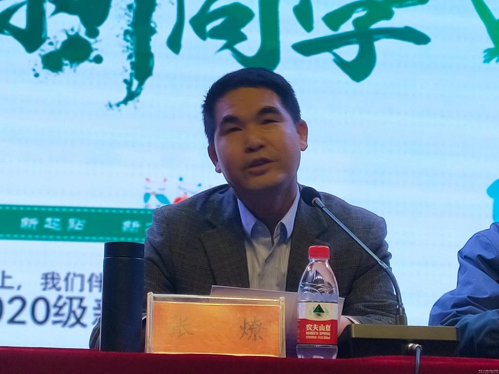 电信学院院长、党支部书记张燎代表学院向全体2020级新生表示热烈欢迎并致辞。他鼓励同学们:一要对自己有足够的信心,从现在开始努力学习,发挥高职专业学生的优势,学好专业知识;二要培养吃苦耐劳的顽强的意志,养成良好的自学习惯,练就过硬本领。三要做好求学职业规划。