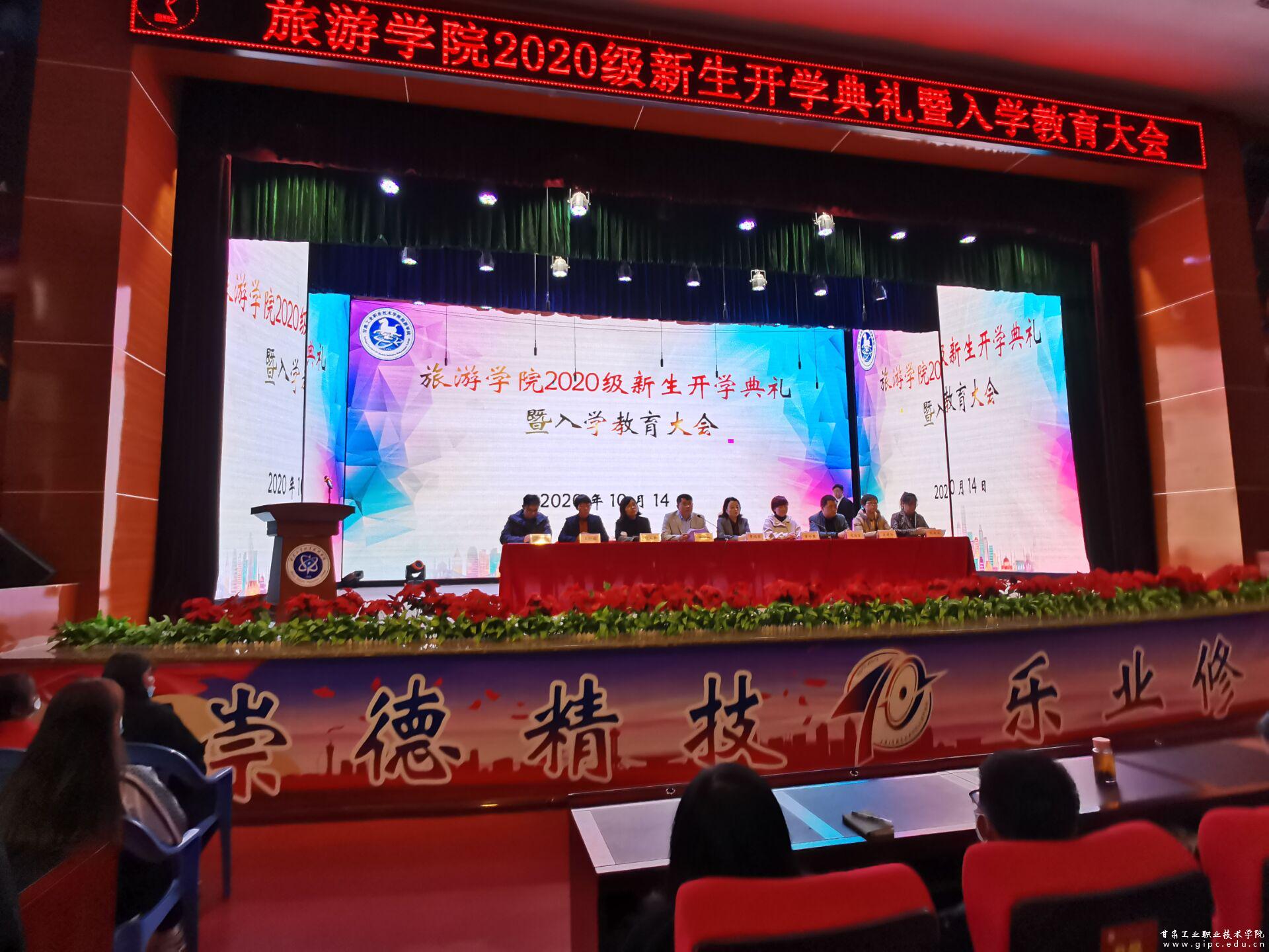 下午4点,旅游学院在大学生活动中心举行了新生开学典礼暨入学教育大会,旅游学院负责人、各专业主任、学生辅导员、班主任以及全院880余名新生参加了大会。