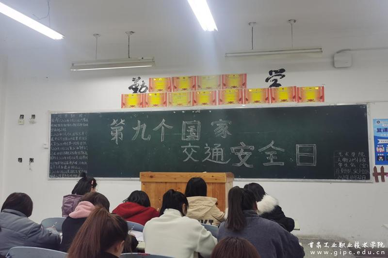 为进一步增强我校学生交通安全法规意识和安全文明意识,教育学生关爱生命,严防道路事故,打造平安校园,11月22日,学工处、团委联合组织全体在校学生展开“第九个国家交通安全日”主题班会。