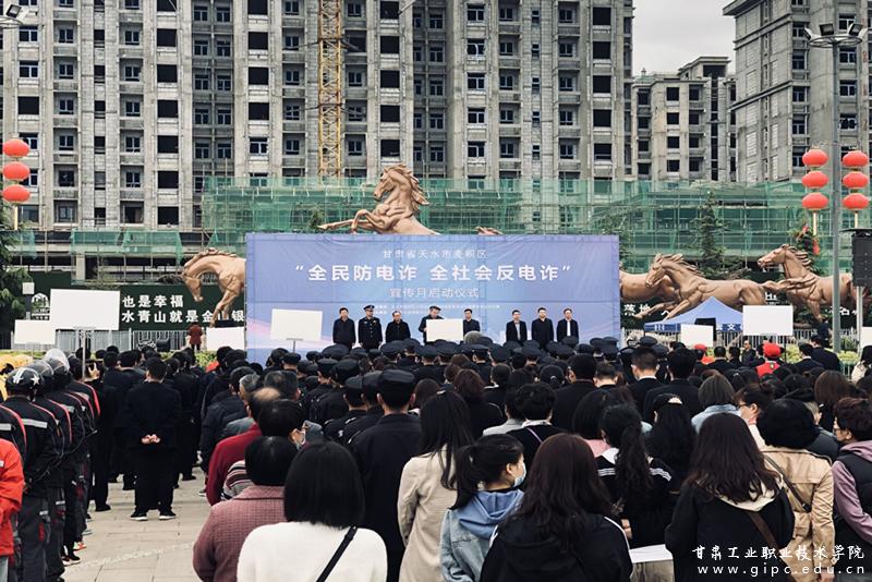 4月21日,天水市“全民防诈 全社会反电诈”宣传月启动仪式分别在秦州区和麦积区举行。教育、公安、电信、银行、大学生志愿者等2000余人参会,我校团委、教务处、学工处、保卫处组织100名学生代表参加了启动仪式。