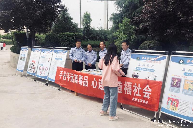 为进一步增强我校师生防毒、拒毒意识,营造一个文明有序的校园环境,5月20日上午,保卫处联系麦积区禁毒办和花牛派出所民警进校进行“手拉手远离毒品,心连心造福社会”禁毒宣传教育活动。