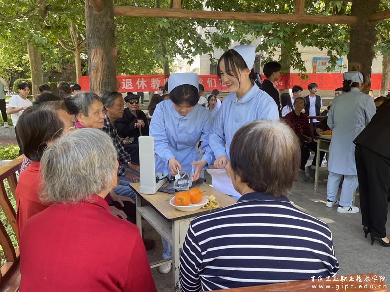 随后,敬老志愿服务社的同学们为老人们量身高、称体重、测血压、测体温,制作健康档案,进行疾病相关健康教育,和老人们亲切交流,细心地询问他们的生活起居状态。现场有说有笑,气氛和谐,暖意融融。