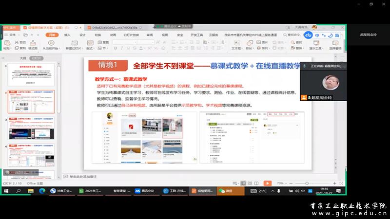 下午15:00,智慧树教学平台韩亚娟老师就平台内课前资源引用、课中翻转工具、课后沟通评价及数据分析进行了梳理讲解,对线上教学使用频繁的直播教学进行演练,与参训教师互动交流,帮助老师们熟悉快捷方便、高质量的线上教学手段,为本次线上教学工作的稳步推进提供了有力保障。