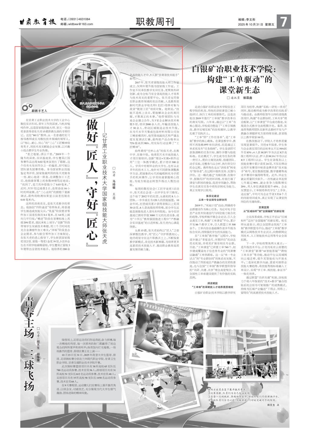 【甘肃教育报】做好「匠人」,守好「匠心」——记甘肃工业职业技术大学国家级技能大师张天虎
