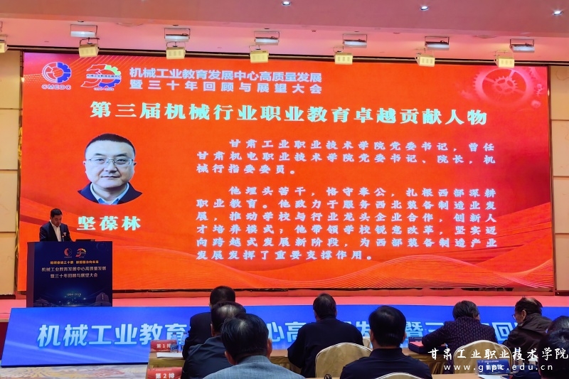 为传承机械行业“尊才重教”的优良传统,展现机械行业先进典型人物奉献人才培养事业的卓越风采,发挥示范引领和榜样带头作用,10月20日上午,机械行业职业教育卓越贡献人物(第三届)授牌仪式在北京天泰宾馆成功举行,我校党委书记坚葆林入选第三届“机械行业职业教育卓越贡献人物”。
