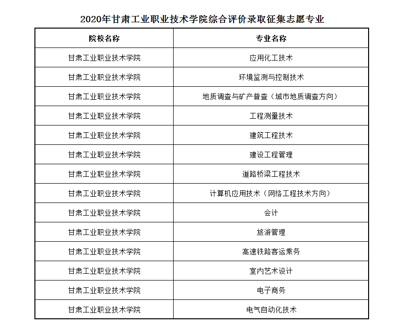 我校2020年综合评价录取征集志愿填报工作于5月14日0:00-23:59进行,已经参加我省高考报名、具有省内普通高中学业水平测试成绩且未被录取的考生可参加本次征集志愿。征集志愿填报网址(http://art.ganseea.cn),我校征集志愿专业见下表。
