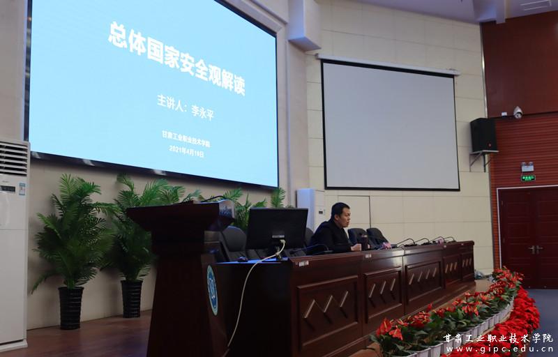 为提高全校学生国家安全法治意识,营造维护国家安全的浓厚法治氛围,增强同学们防范和抵御安全风险的能力,4月19日下午,学校在图书馆智敏学术报告厅组织开展国家安全教育专题讲座,天水市国家安全局李永平做“总体国家安全观解读”专题报告。学校宣传统战部、学工处、保卫处、团委等部门负责同志、全体专职辅导员、部分学生代表共200余人参会。