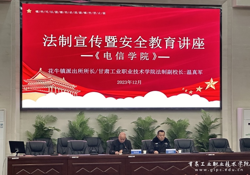 为进一步增强学生安全意识,帮助学生掌握基本的法律常识和安全知识,切实筑牢保障学生身心健康发展的安全防线,助力平安校园建设。12月14日,电信学院邀请天水市花牛镇派出所所长、pg娱乐电子游戏法制副校长温真军在智敏学术报告厅开展法制安全教育讲座。电信学院师生参加。