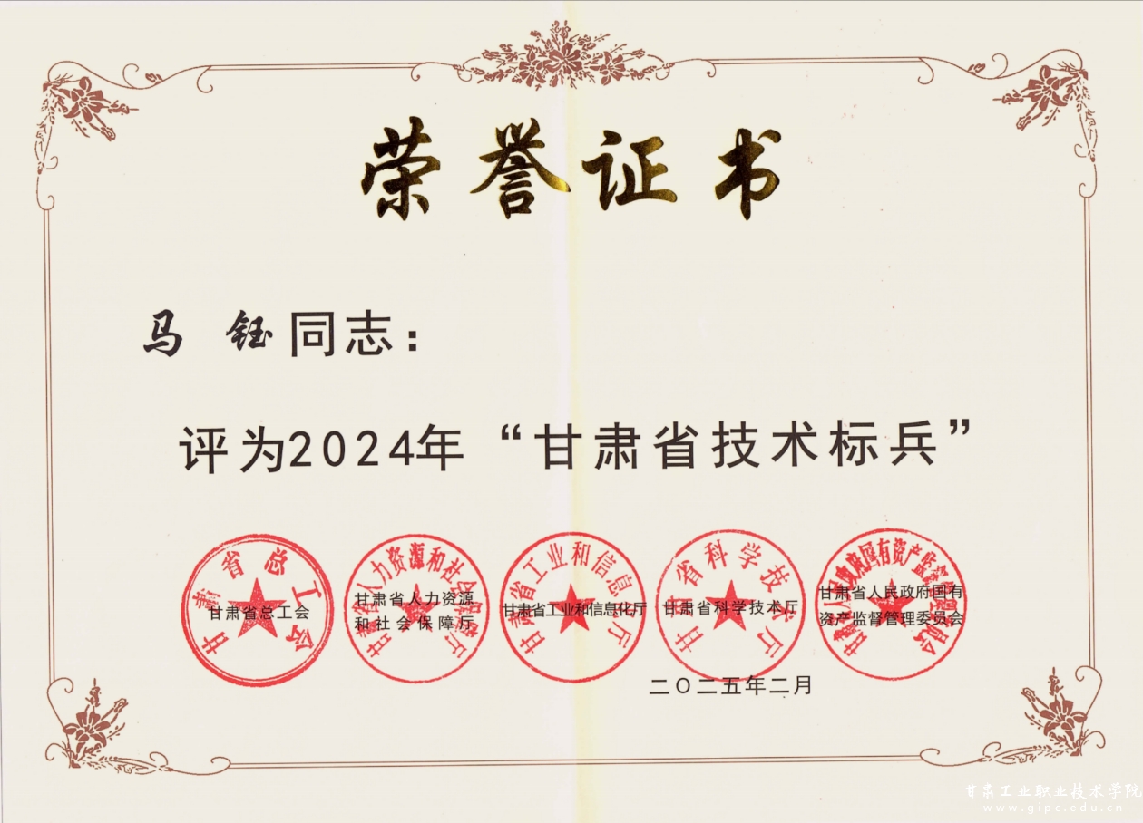 近日,甘肃省总工会、甘肃省人力资源和社会保障厅、甘肃省工业和信息化厅、甘肃省科学技术厅及甘肃省人民政府国有资产监督管理委员会联合对2024年甘肃省百万职工劳动和技能竞赛获奖单位和个人进行表彰通报,我校智能制造学院教师马钰、于建勇荣获“甘肃省技术标兵”荣誉称号。这不仅是对老师个人专业技能和辛勤付出的高度认可,也是我校师资队伍建设成果的有力彰显。