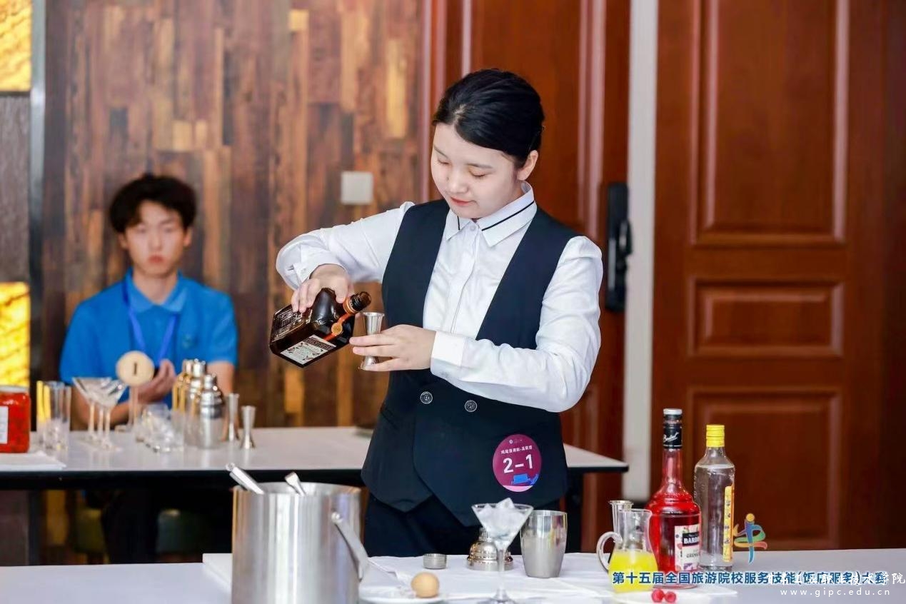 我校旅游学院王晋、高苑老师指导的2024级酒店管理与数字化运营专业蒋明瑞、黄子峰、许天平、李凤四名学生凭借扎实的专业技能与出色表现,分别在中餐摆台、西餐摆台、中式铺床及VIP礼遇、鸡尾酒调制四个赛项中荣获三等奖,同时大赛主办方授予我校优秀组织奖。这份荣誉不仅是对师生专业能力的高度认可,更是对我校技能人才培养成效的充分肯定。